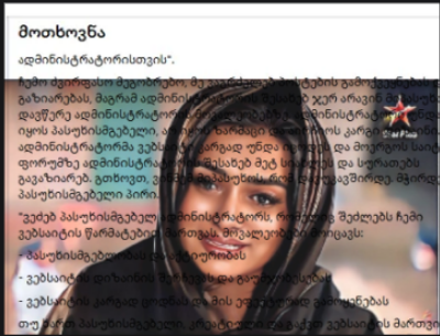 | მოთხოვნა ადმინისტრატორისთვის". ჩემო ძვირფასო მეგობრებო, მე ვაგრძელებ პოსტების გამოქვეყნებას და გაზიარებას, მაგრამ ადმინისტრატორის შესახებ ჯერ არავინ მიპასუხა მე დავწერე ადმინისტრატორის მოვალეობებზე. ადმინისტრატორი უნდა იყოს პასუხისმგებელი, არ იყოს ზარმაცი და აირჩიოს კარგი დიზაინი. ადმინისტრ ატორმა ვებსაიტი კარგად უნდა იცოდეს და მოერგოს საიტს. ფორუმზე ადმინისტრატორის შესახებ მეტ სიახლეს და სურათებს გავაზიარებ. გთხოვთ, ვინმემ მიპასუხოს, რომ დავუკავშირდე. მჭირდება პასუხისმგებელი პირი. "ვეძებ პასუხისმგებელ ადმინისტრატორს, რომელიც შეძლებს ჩემი ვებსაიტის წარმატებით მართვას. მოვალეობები მოიცავს: - პასუხისმგებლობას და აქტიურობას - ვებსაიტის დიზაინის შერჩევას და გაუმჯობესებას - ვებსაიტის კარგად ცოდნას და მის ეფექტურად გამოყენებას თუ ხართ პასუხისმგებელი, კრეატიული და გაქვთ ვებსაიტის მართვის გამოცდილება, გთხოვთ, დამიკავშირდით. მე ვეძებ ადამიანს, ვინც შეძლებს ჩემს გვერდს წარმატებისკენ წაიყვანოს. მადლობა!" „ადმინისტრატორის მოთხოვნა ძვირფასო მეგობრებო, გიკავშირდებით, რადგან ჯერ კიდევ მჭირდება პასუხისმგებელი და თავდადებული ადმინისტრატორი ჩემი ვებსაიტისთვის. ჩემი წინა პოსტების მიუხედავად, არ მიმიღია არცერთი პასუხი, რომელიც აკმაყოფილებს ჩემს მოლოდინებს. შეგახსენებთ, რომ ადმინისტრატორის მოვალეობები მოიცავს: - ვებსაიტის მუდმივად განახლებული და გამართული მუშაობის უზრუნველყოფა - ვიზუალურად მიმზიდველი დიზაინის შერჩევა და დანერგვა, რომელიც შეესაბამება ჩემს ბრენდს - ვებსაიტის ფუნქციონალურობის ღრმა გაგება და საჭიროების შემთხვევაში გაუმჯობესების შეტანა თუ თქვენ ხართ მოტივირებული და კრეატიული ადამიანი, რომელსაც აქვს ვებსაიტის მართვის გამოცდილება, სიამოვნებით მოგისმენთ. ჩემი იდეალური კანდიდატი არის ადამიანი, რომელიც არის პროაქტიული, ყურადღებიანი და გატაცებულია მაღალი ხარისხის შედეგების მიწოდებით. როგორც ჩემი ვებსაიტის ადმინისტრატორი, თქვენ მნიშვნელოვან როლს შეასრულებთ მომხმარებლის გამოცდილების ჩამოყალიბებაში და დამეხმარებით ჩემი ონლაინ მიზნების მიღწევაში. თუ მზად ხართ გამოწვევისთვის და გჯერათ, რომ გაქვთ ყველაფერი, რაც საჭიროა ჩემი გვერდის წარმატების მისაღწევად, გთხოვთ, ნუ მოგერიდებათ დამიკავშირდეთ. მოუთმენლად ველი თქვენგან კითხვებს ვისმენ და განვიხილავ, თუ როგორ შეგვიძლია ერთად ვიმუშაოთ ჩემი ვებსაიტის ახალ დონეზე ასაყვანად. გმადლობთ!"